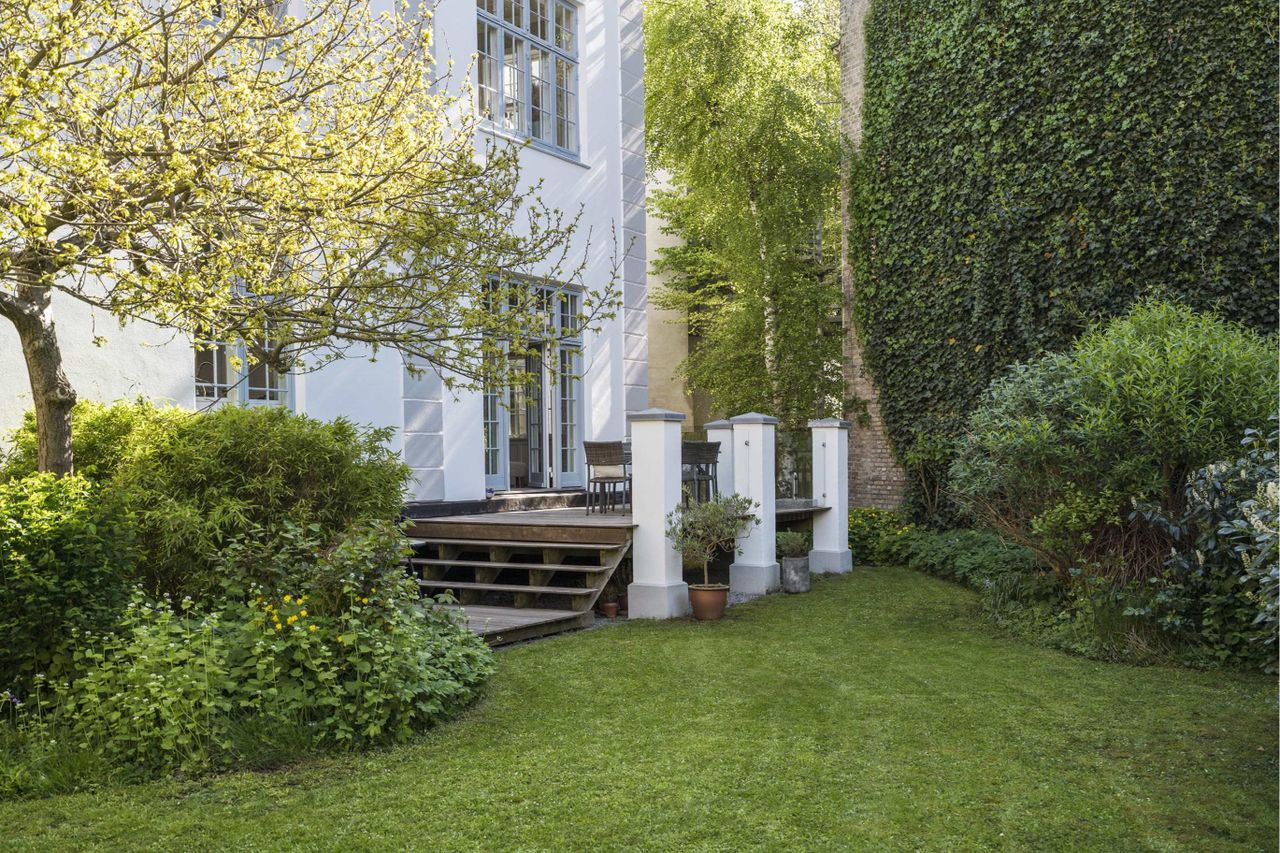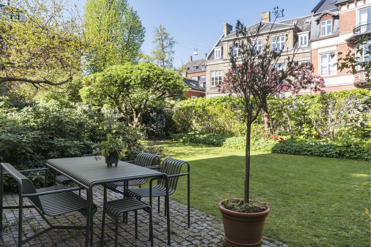 vinduer og døre og i den dejlige have. Man fornemmer på ingen måde, at man befinder sig midt i byen.