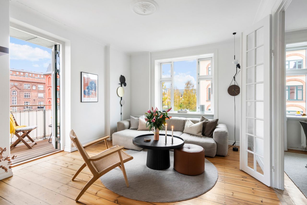 Sælger har ejet lejligheden siden 2016 og har igennem årene vedligeholdt og renoveret lejligheden med bl.a. nyt køkken, nyt udvidet badeværelse, udskiftet elektricitet og slebet/lakeret gulve. De originale plankegulve er heldigvis bevaret og sammen med de smukke stuklofter og fyldningsdøre, udgør det en ægte smuk herskabslejlighed. Da lejligheden er beliggende på et hjørne er her et pragtfuldt lysindfald - og en udsigt til det grønne Frederiksberg, hvor årstiderne kan følges fra første parket. Fra stuen er der adgang til den dejlige altan, som giver følelsen af en ekstra stue i sommerhalvåret. Her kan solen og roen nydes i fulde drag. Det dejlige køkken er fra Invita og er indrettet med Quooker samt opvaskemaskine og kombineret opvaskemaskine/tørretumbler. Der er også en vaskekælder i ejendommen med tørreplads både på loftet og i kælderen.