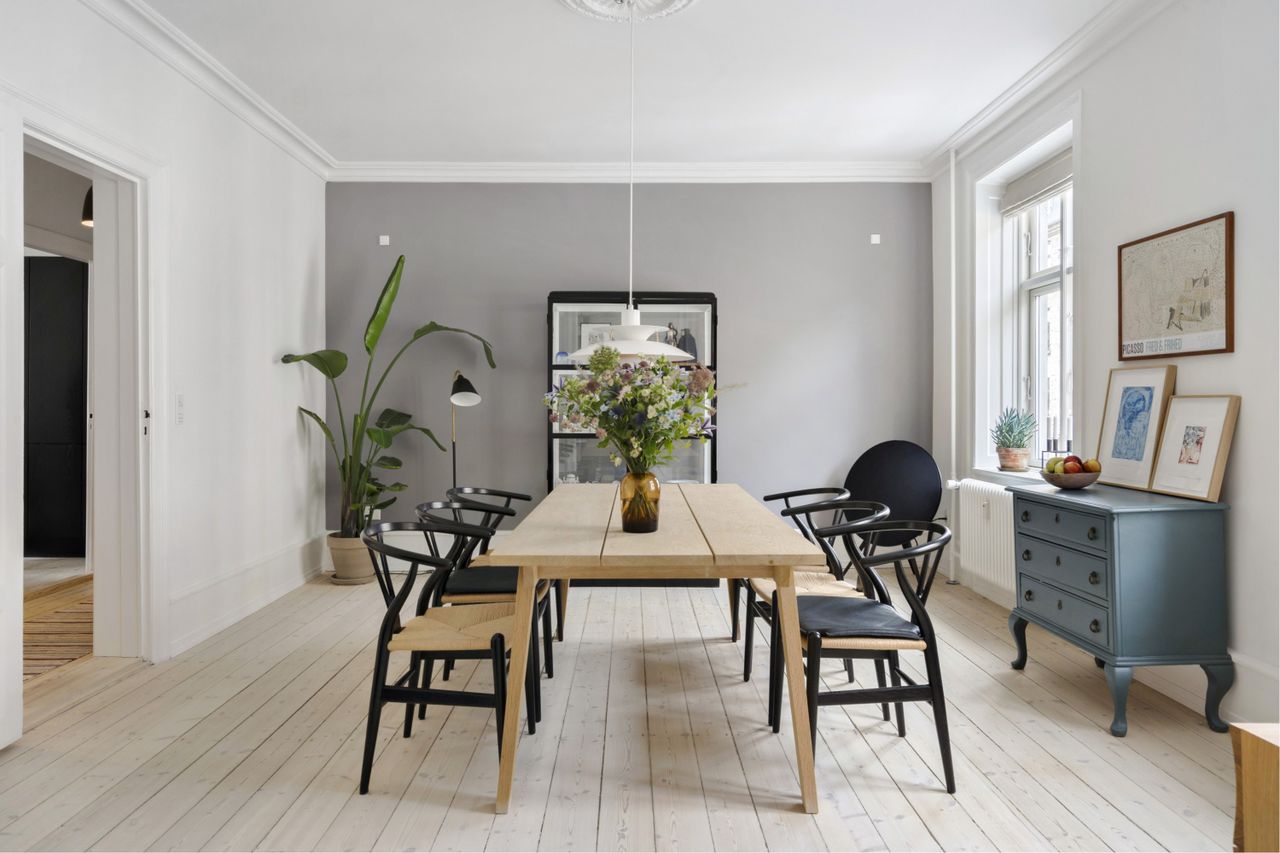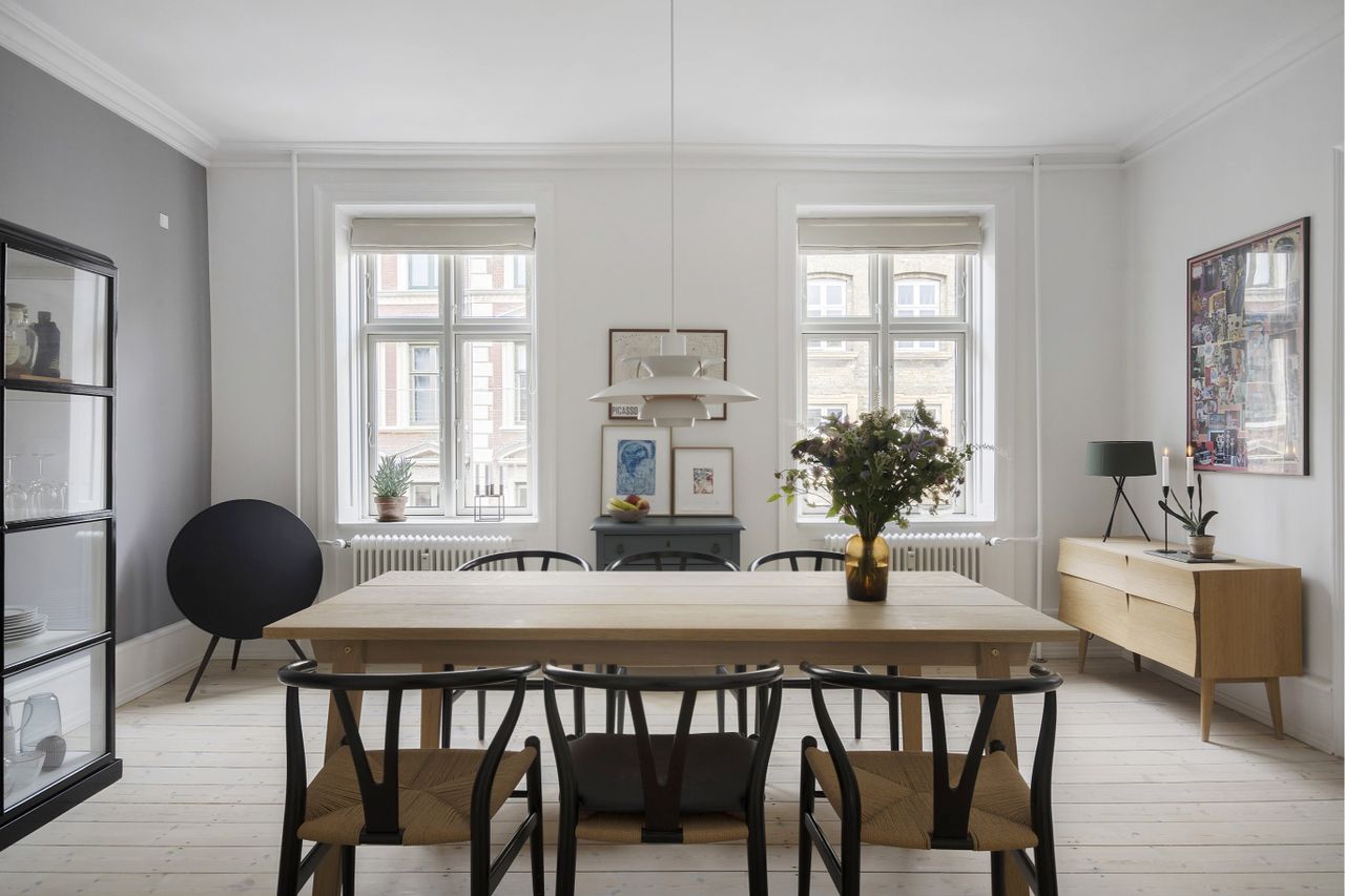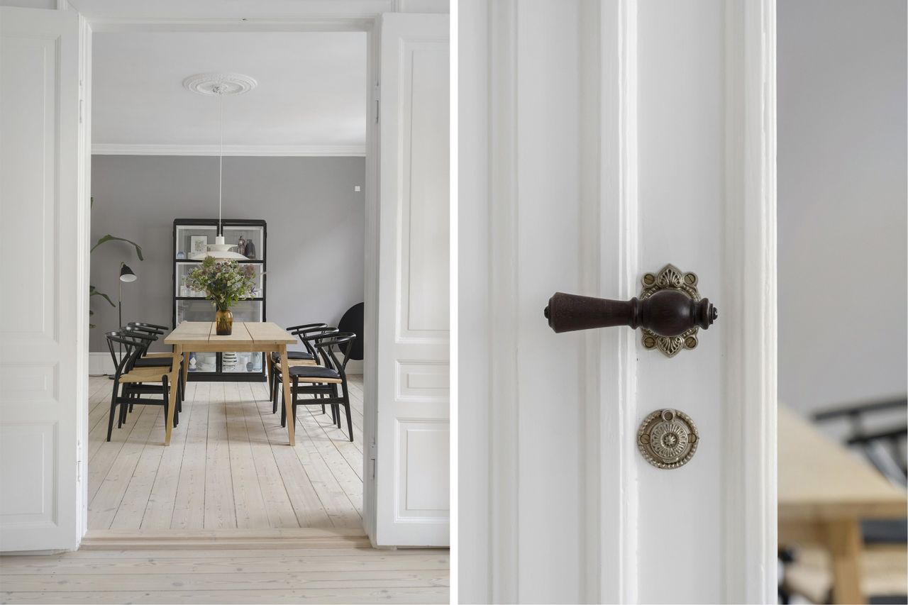 hygge i den smukke spisestue. Køkkenet er fra Invita med håndmalede vægfliser fra Made A Mano. Overalt