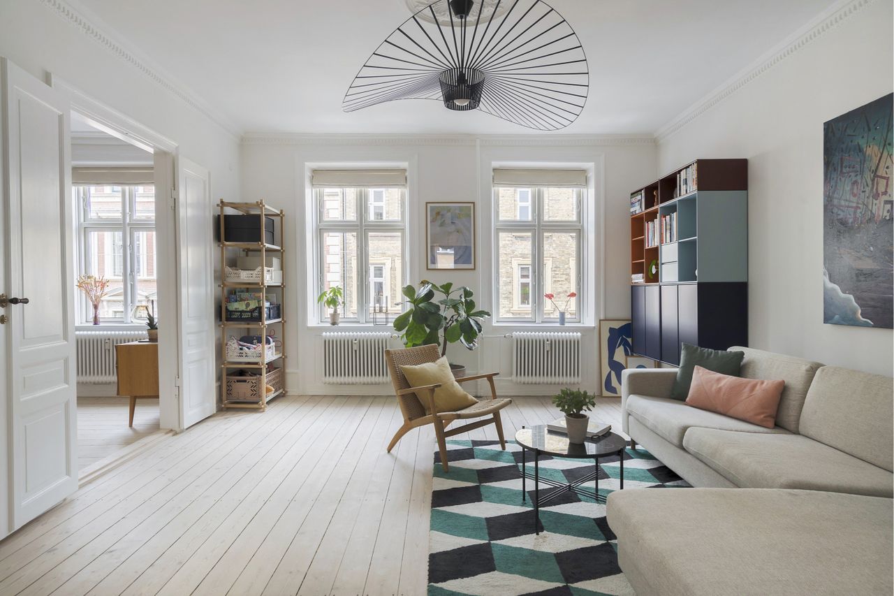 lysindfald i lejligheden, som man hurtigt lærer at sætte pris på, og brændeovnen skaber indbegrebet af