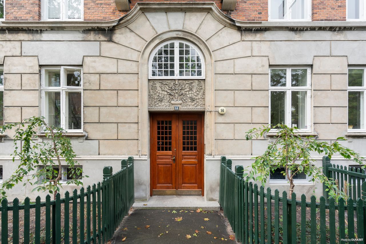 Denne ejerforening, der består af 2 opgange - nr. 12 og 14 - ligger blandt de aller bedste på vejen. Her er man nemlig direkte genbo til Frederiksberg Have og har en ubeskrivelig smuk panoramaudsigt til et grønt maleri af Frederiksbergs idyl, som skifter efter årstiderne. De smukke stuklofter, gennemgående plankegulve og de smukke vinduer er heldigvis bevaret, og det er alt sammen detaljer, der giver den stil og stemning, som var tiltænkt ejendommen tilbage i 1905, da ejendommen blev opført. Selv opgangen er en oplevelse i sig selv og fremstår yderst herskabelig.