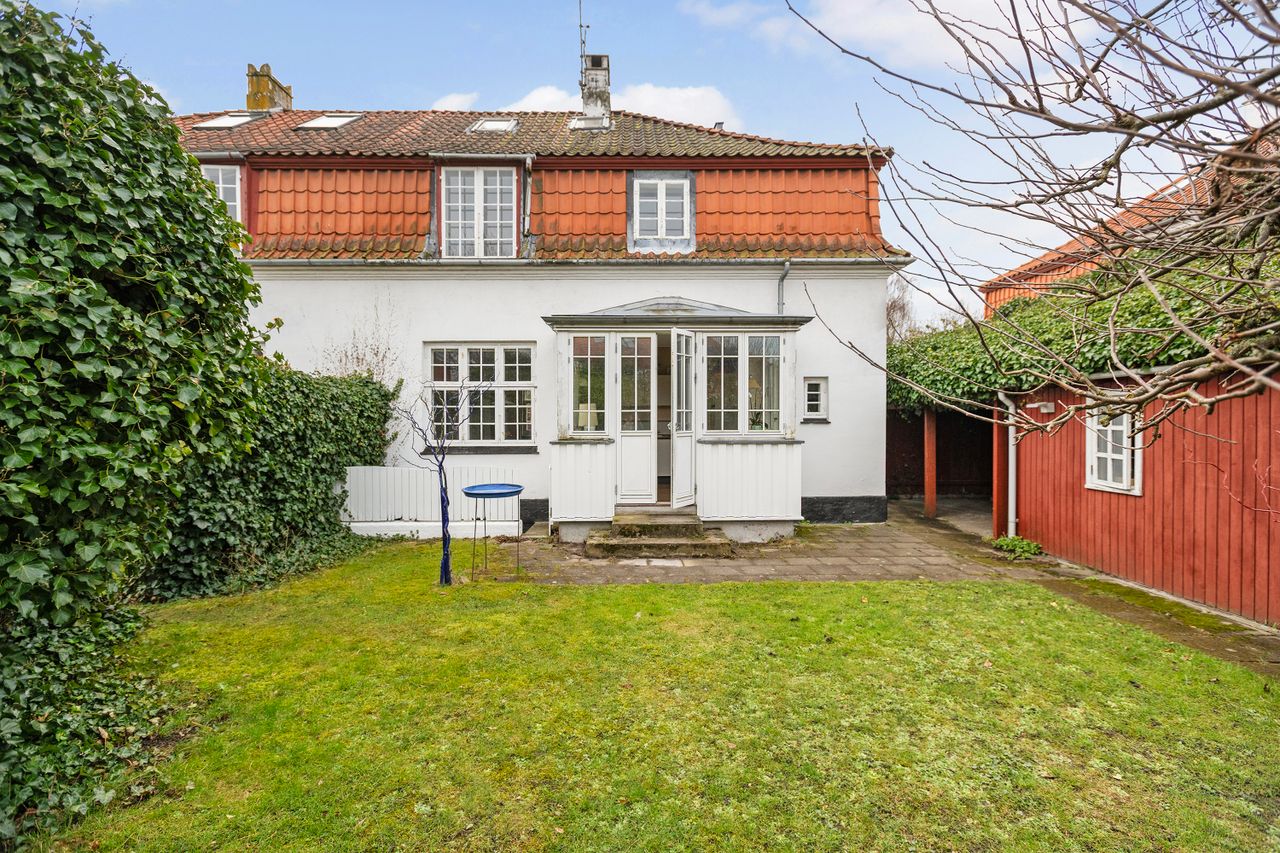 Skab din drømmebolig i charmerende rammer - Velkommen til denne hyggelige 1/2 dobbelthus med masser af potentiale og sjæl. Her får du en bolig med en helt særlig atmosfære, hvor originale detaljer og gode indretningsmuligheder går hånd i hånd.