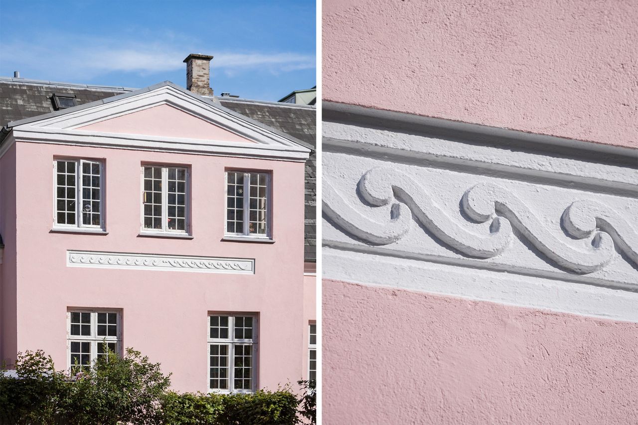 Man bemærker straks den smukke ikoniske lyserøde villa med de originale udsmykninger, når man tager sin gang gennem Mynstersvej. Ejendommen indeholder 2 ejerlejligheder og har opdelt have og parkeringspladser. Sælger har løbende vedligeholdt ejendommen - senest med malede facader, vinduer og sålbænke, malet hoveddør og frontparti samt fine dørklokker i messing.