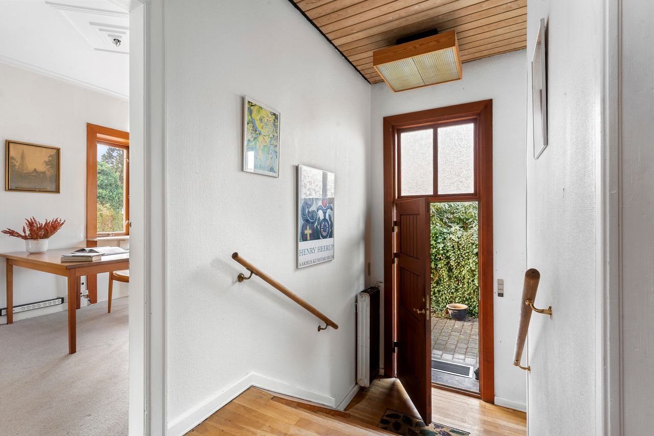Ejendommen er opført i 1937 med en tilbygning i 1946. Byggemæssigt var 1937 et overgangsår, hvor funktionalismen udfordrede de mere traditionelle byggestilarter, og en kombination af begge tendenser formede meget af dansk arkitektur. Og det er netop den arkitektur, der er den røde tråd, når man tager sin gang igennem den smukke ejendom. De store vinduespartier, den rene stuk, markante træværk, kubiske former og fokus på funktionalitet.
