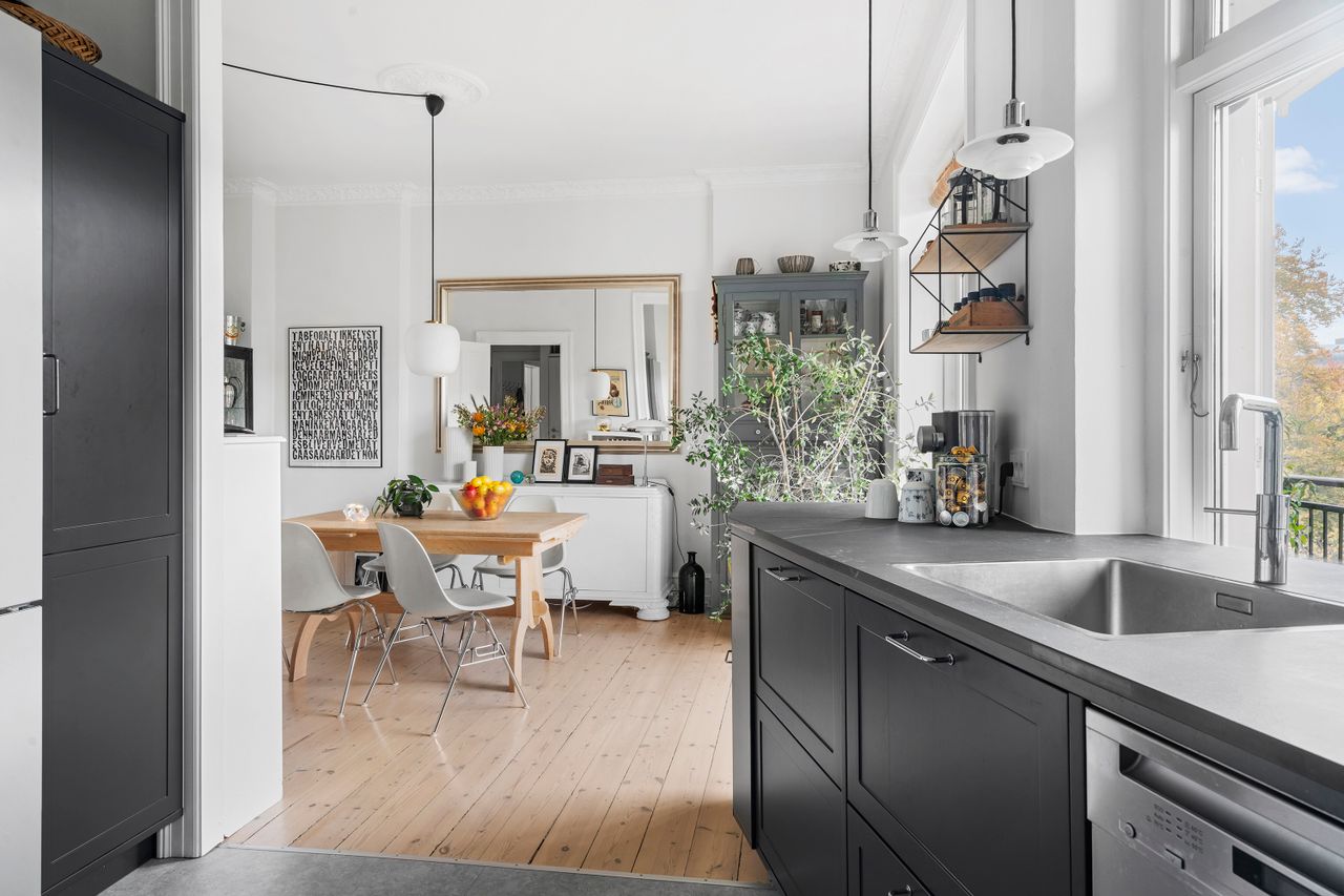 Lejligheden fremstår utrolig pæn og indflytningsklar. Overalt er de originale plankegulve bevaret og sammen med de ægte stuklofter og det originale træværk, giver det til sammen den gennemgående fornemmelse af en ægte herskabslejlighed. Bemærk også hvordan de smukke stuer en suite har et pragtfuldt lysindfald - selv på en kølig vinterdag.