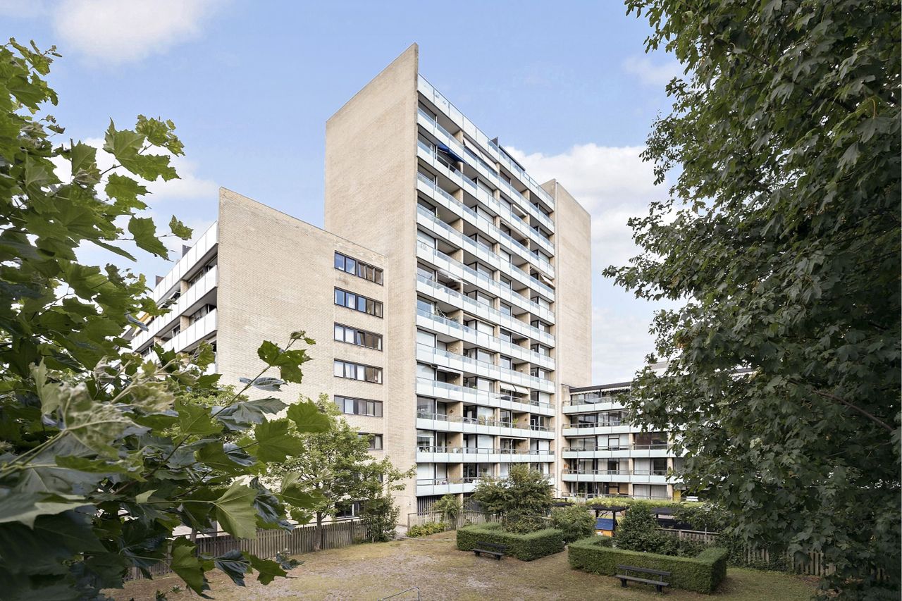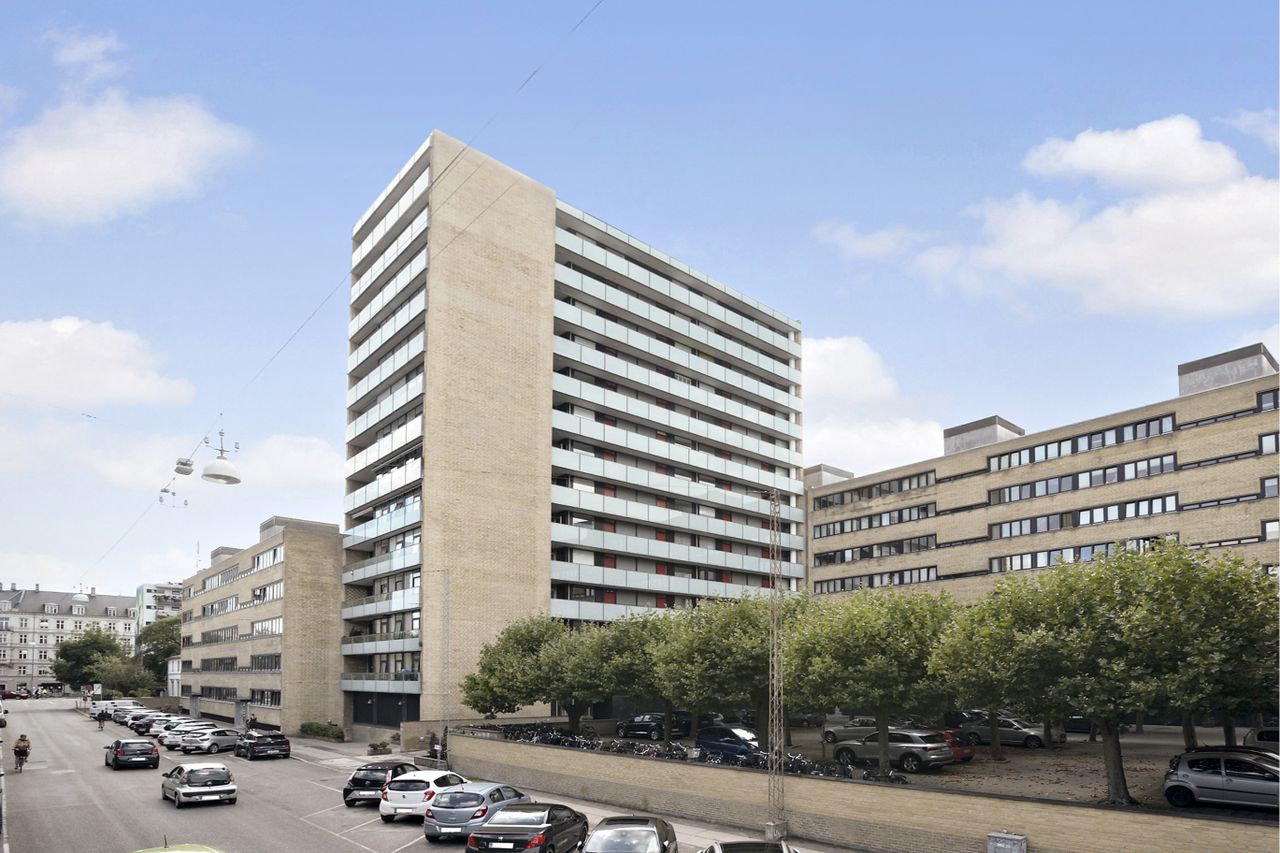 Ejendommen er moderne fra år 1970 med handicapvenlige elektroniske døre og elevatorer. Som beboer