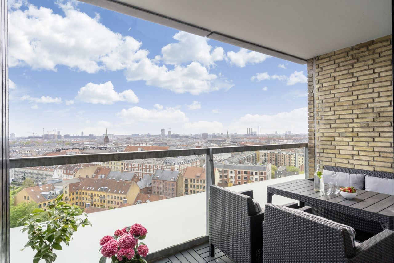 Lejligheden har med sin frie udsigt og store vinduespartier et helt fantastisk lysindfald. Byens bedste