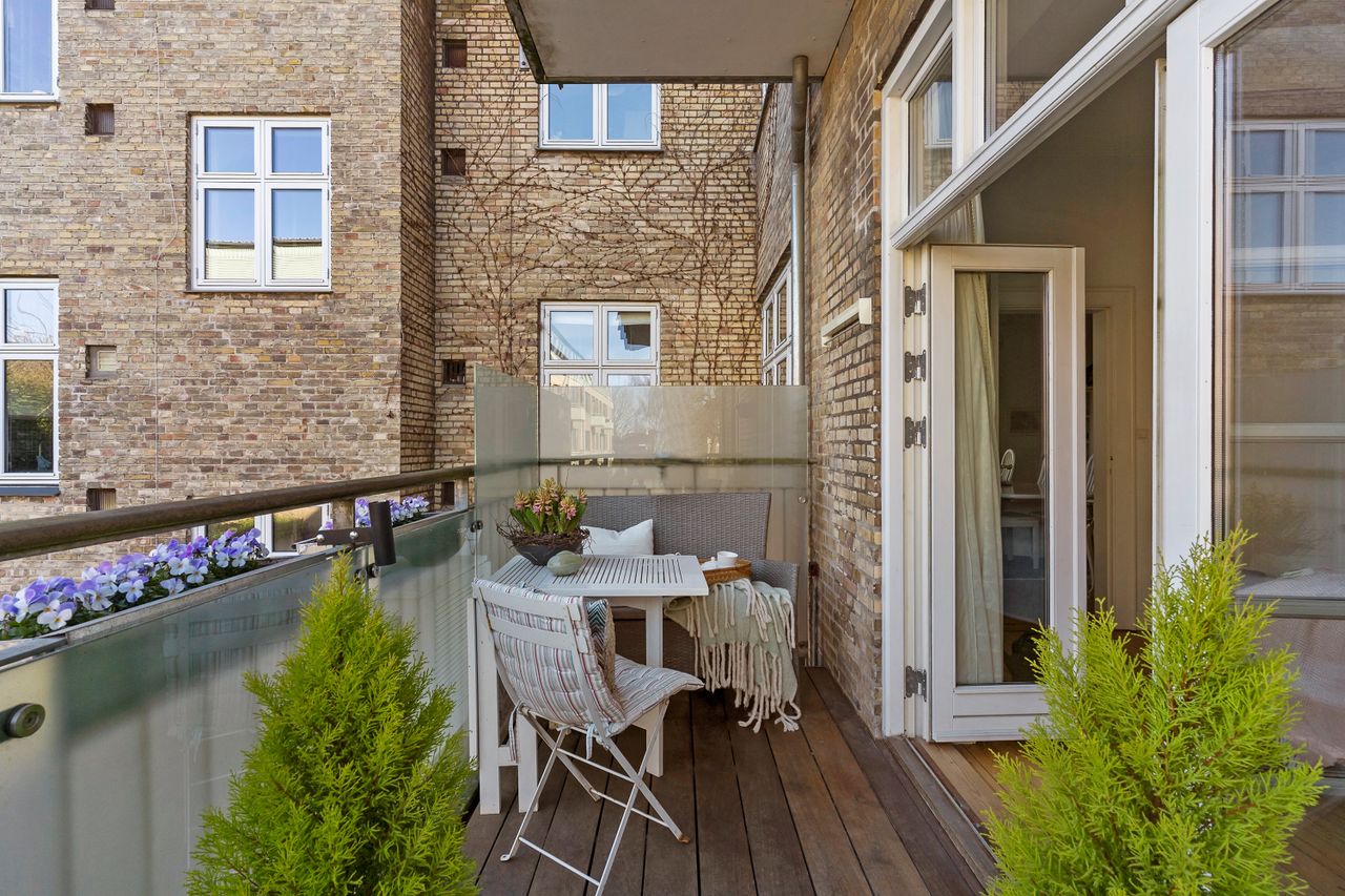 Man bliver begejstret, så snart man træder indenfor. Fra entréen ledes man videre til de to stuer en suite. Særligt den dybe karnap med sidevinduer kan noget helt særligt. Smukke sildebensparketgulve samt flot stuk og rosetter fuldender det herskabelige udtryk. Sælger har fået etableret et smukt og meget æstetisk køkken fra Multiform med en elegant bordplade. Køkkenet er udført i høj kvalitet med rigelig opbevaringsplads og er fuldt udstyret med alle hårde hvidevarer. Det ligger separat, men med indtænkt siddeplads og i naturlig forlængelse af den store spisestue, som fungerer som samlingspunkt med god plads til både gæster og samvær. Lejligheden rummer to gode soveværelser, hvorfra der fra det ene er udgang til en dejlig altan, hvor solen kan nydes i eftermiddags og aftentimerne hele sommeren. Badeværelset er stort og rummeligt med bruseniche, gulvvarme og vindue. Gæstetoilet i entréen giver ekstra komfort i hverdagen.