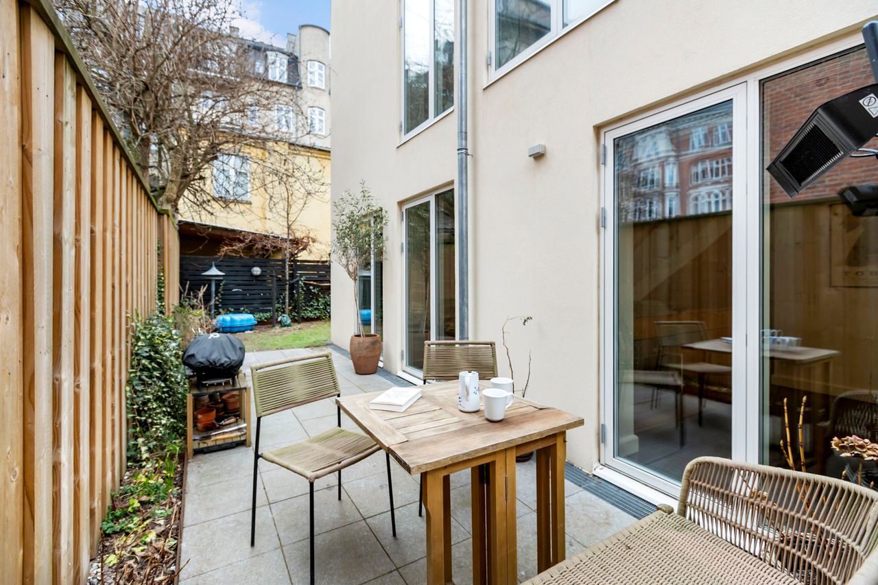 Sjældent udbudt byhus på det indre Frederiksberg - Byhuset er opført i 2022, hvor Alhambravej 15 blev ombygget fra erhverv til bolig, så ejendommen fremstår i dag som nyrenoveret i smuk arkitektonisk stil. Byhuset er opført som en tilbygning til den eksisterende ejendom, så 15A er et helt nyt hus med en høj energimærkning A2015. Til boligen hører en pragtfuld græsbelagt have med syd-/vestvendt, flisebelagt terrasse. Haven er indhegnet og fuldstændig privat med adgang via port direkte til boligen. Til ejendommen har desuden fælles kælder med brugsret til cykelkælder, eget depotrum og aflåst parkeringskælder med egen parkeringsplads og med mulighed for opladning af elbil.