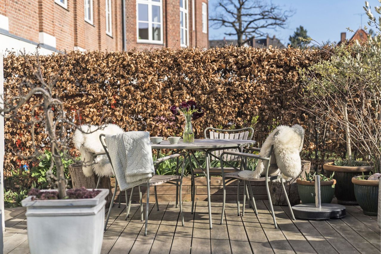 brugsret til pulterrum, et hyggeligt aflukket gårdmiljø med borde og bænke samt to solhaver til