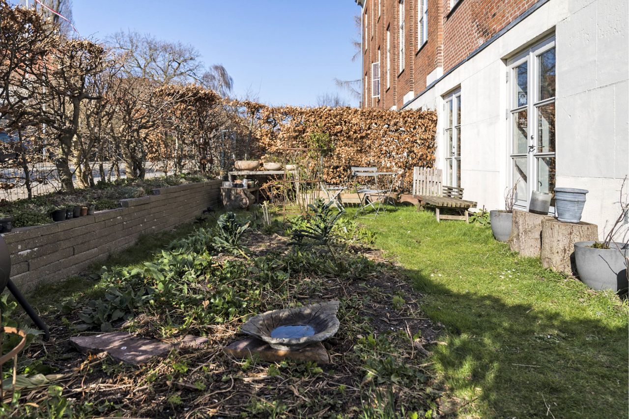 have med egen brugsret. Haven er særdeles velanlagt med hyggelig beplantning, græs og solrig