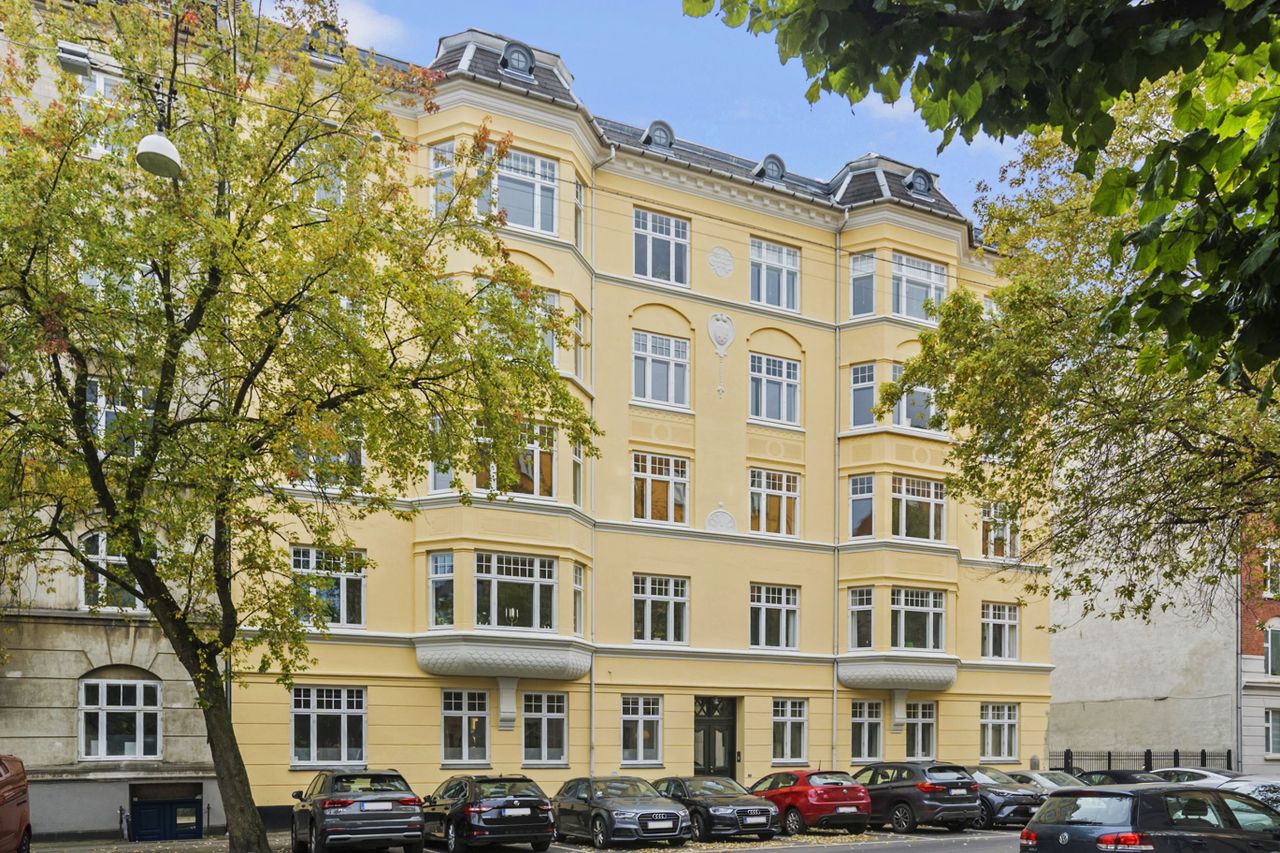 Ejendommen er opført i 1902 og fremstår flot og præsentabel med en opgang, der understreger herskabeligheden. Til ejendommen hører en hyggelig gårdhave med fælles borde og bænke, samt fælles parkeringspladser til fri og gratis benyttelse for beboerne. Lejligheden har eksklusiv brugsret til både kælder- og loftrum.