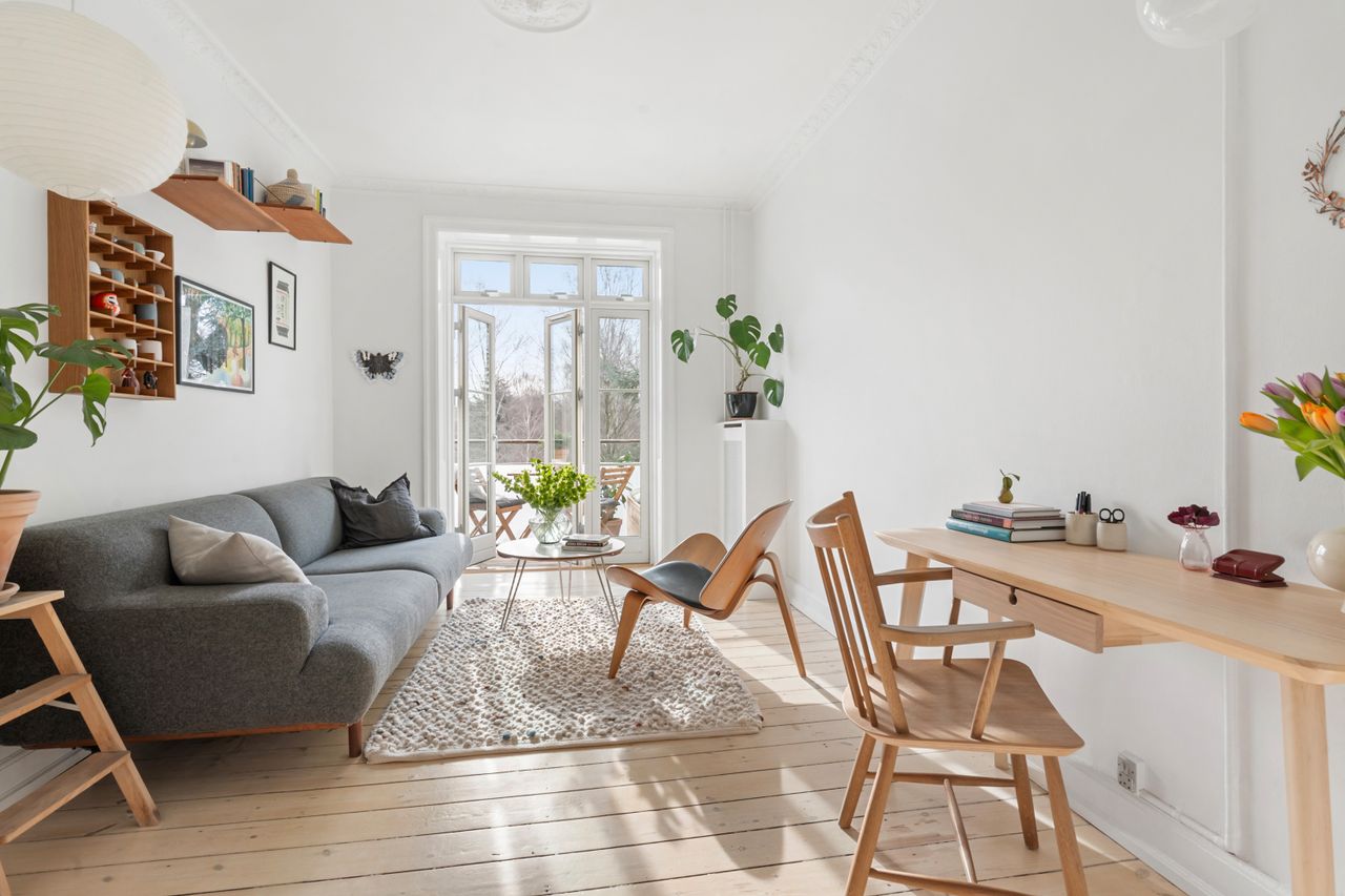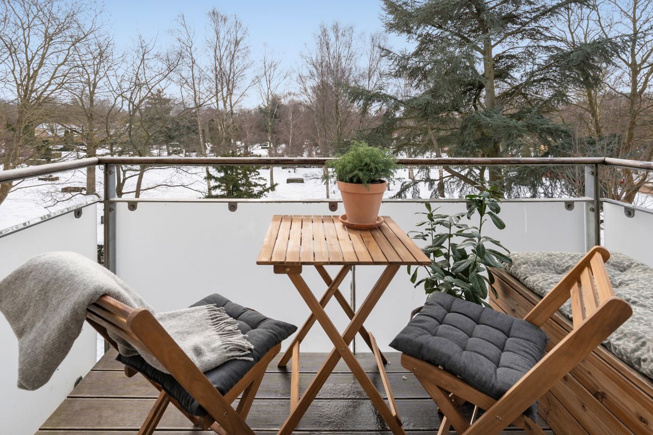 Engang imellem træder man ind i en lejlighed, hvor man både bliver begejstret og straks føler sig hjemme. Det er tilfældet her. På anden etage finder du en lejlighed, der er lige til at flytte ind i. Allerede i entréen mødes man af en stemning og en ro, der er sjælden at finde i storbyen. Lejligheden er 70 kvadratmeter (BBR), som er udnyttet til perfektion. Planløsningen er veldisponeret og skaber en naturlig sammenhæng mellem rummene. Altanen er dejlig indbydende. Den tilgås fra den nuværende tv stue og fungerer som en naturlig forlængelse af opholdsarealet i forårs og sommermånederne. Med sin sydvendte placering og ugenerede udsigt til grønt og trækroner er altanen det ideelle uderum. I første parket til byens oase.