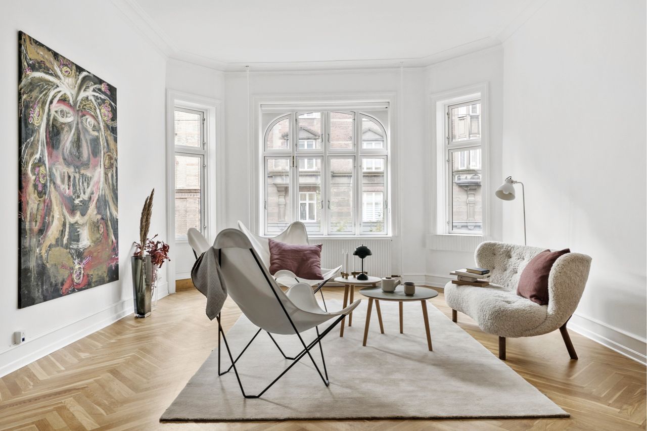 Lejligheden fremstår flot og istandsat med smukke sildebensparket, flot køkken i hvide elementer og alt i