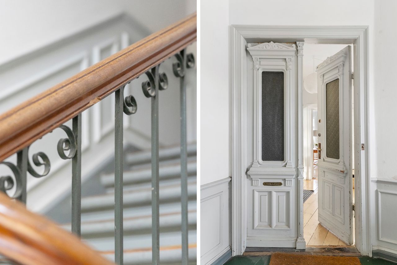Lejligheden fremstår utrolig pæn, lys og indbydende. Igennem de senere år er ejendommen renoveret med fokus på moderne funktionalitet. Køkkenet er åbnet op, og gæstetoilet er skabt. Detaljer i en gammel herskabslejlighed, der gør den helt særlig. De smukke stuer en suite inviterer til gode stunder, og køkkenet bliver hurtigt samlingspunkt for familie og venner, mens der kokkereres.