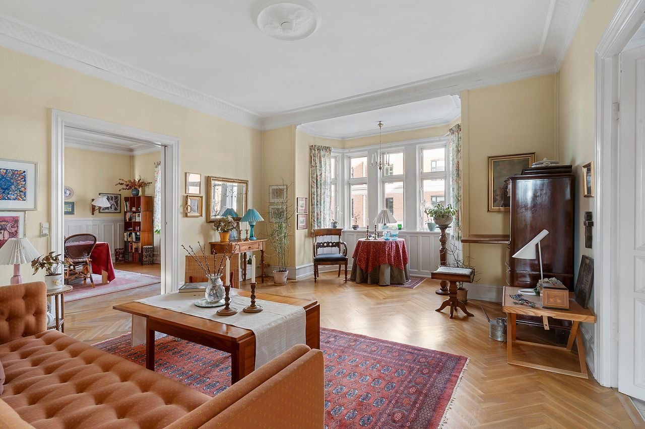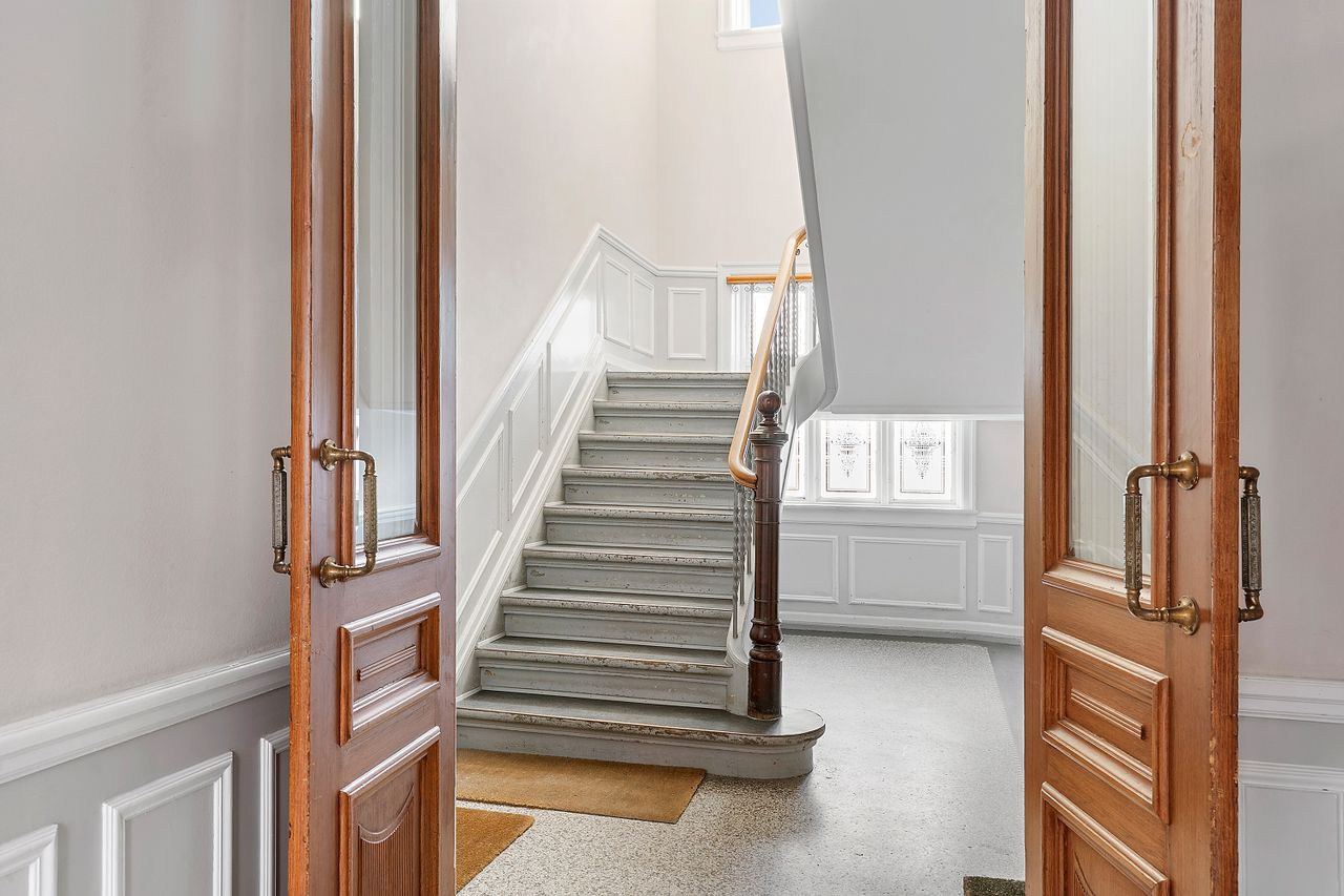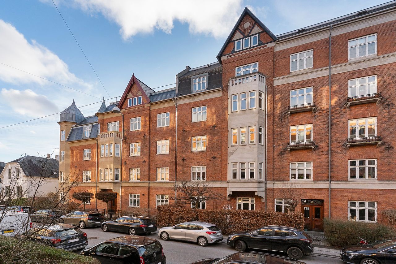 Ejendommen fremstår flot og velholdt med en velfungerende lille ejerforening, hvor der er en god dialog, beboerne taler løbende om tingene og passer på ejendommen. Allerede i opgangen glædes man over herskabeligheden og de bevarede originale detaljer, som fortsætter som den røde tråd ind i lejligheden. De smukke stuklofter, høje paneler, trægulve, stuer en suite - alt sammen detaljer, der giver netop den stil og stemning, som var tiltænkt ejendommen tilbage i 1905, da ejendommen blev opført. Sælger har boet i lejligheden i næsten 40 år, og det er tydeligt at se, at det er en lejlighed, der er blevet passet på. Der er en helt særlig stemning af bevaret originalitet og herskabelighed.