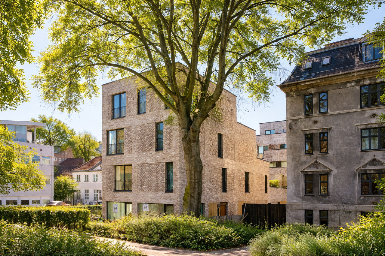 Ejendommen er opført med 12 ejerlejligheder, der varierer i størrelse fra ca. 80-160 m2. Denne lejlighed er på 101 kvm og har et vidunderligt lysindfald. Indretningen med 2 soveværelser eller 2 stuer en suite - alt efter hvad man har brug for - er gennemtænkt med henblik på åben og fleksibel indretning, optimalt lysindfald og minimal spildplads.