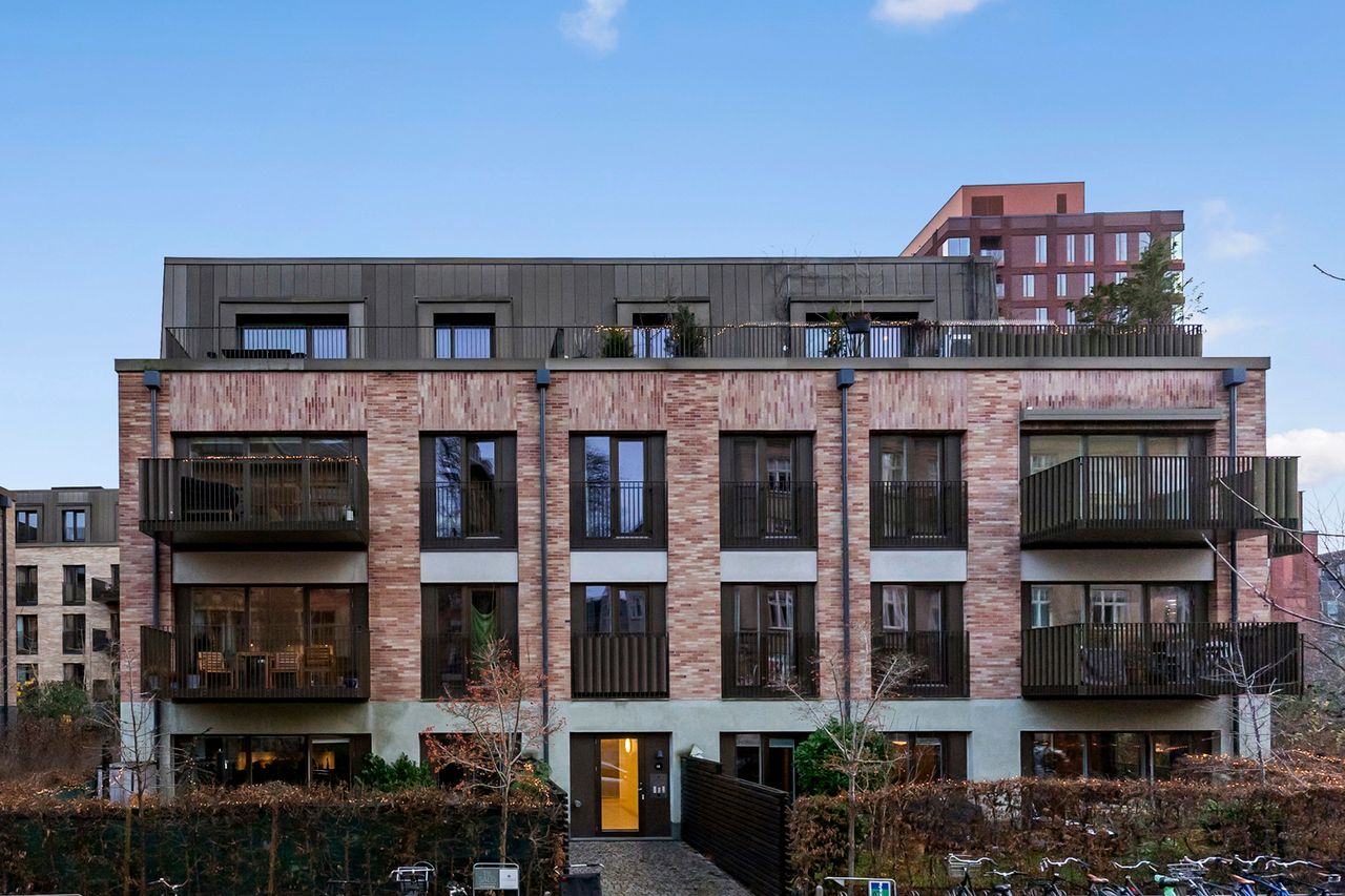 Ejendommen er opført i 2018, og fra opgangen er der elevator direkte ned til pulterrum, cykelkælder og parkeringskælderen, der er ejet af Carlsberg Byen, hvor parkeringspladser kan lejes. Nemt og bekvemt. Udgiften hertil er ikke medtaget i den oplyste ejerudgift. Sælger har ikke en parkeringsplads i kælderen, da de 2 ejendommen har beboerlicens til Frederiksberg Kommune - som de eneste i Carlsberg Byen. Sælger parkerer derfor blot på gaden.